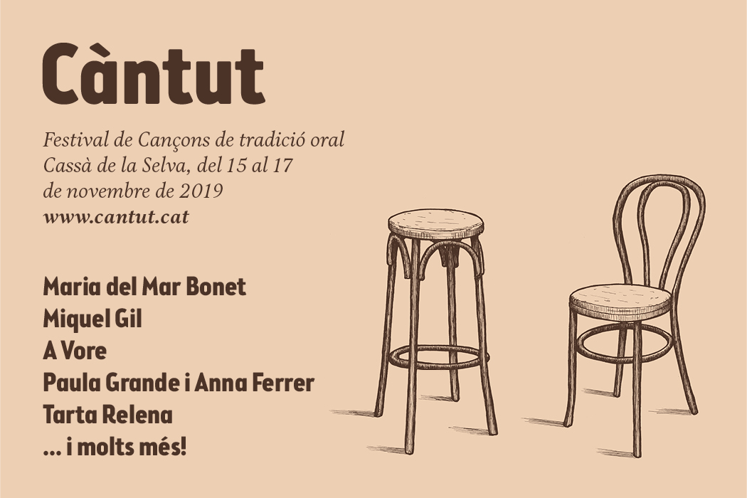 El Festival Càntut. Cançons de tradició oral presenta tota la programació de la quarta edició, que tindrà lloc del 15 al 17 de novembre a Cassà de la Selva. Durant un cap de setmana es podran veure 21 propostes entre concerts, tallers, exposicions, presentacions literàries i tallers, amb noms com Maria del Mar Bonet, Miquel Gil, Arnau Obiols, Paula Grande i Anna Ferrer, Arrels de Gràcia i Lo Barber, entre d’altres. El 75% de les propostes són gratuïtes i la resta amb entrades dels 4 € als 20 € que ja es poden adquirir al web del festival.