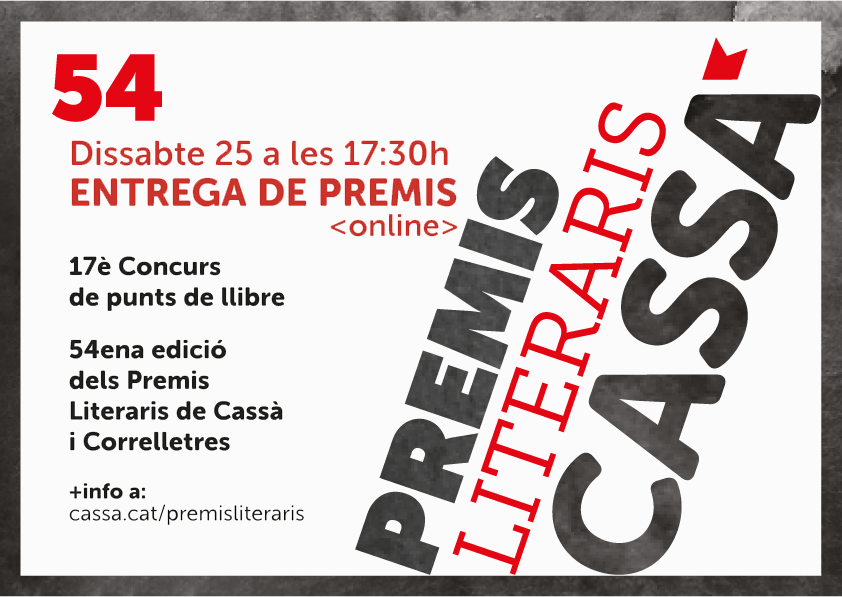 El dissabte 25 d'abril a les 17.30 h tal com estava previst es realitzarà la gala dels Premis literaris, i Concurs de punts de llibre, però en aquesta edició serà virtual.