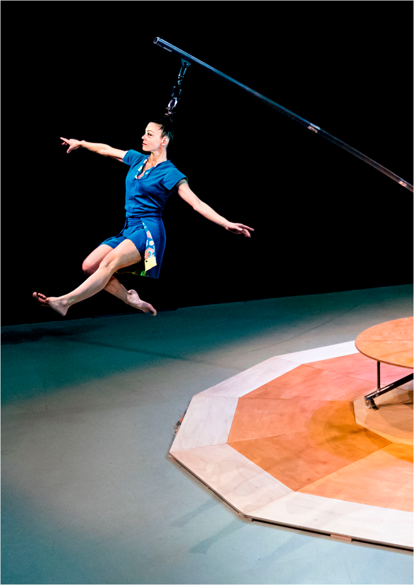 Circ (verticals, funambulismes, suspensió capil·lar), música en directe, dansa i teatre gestual.