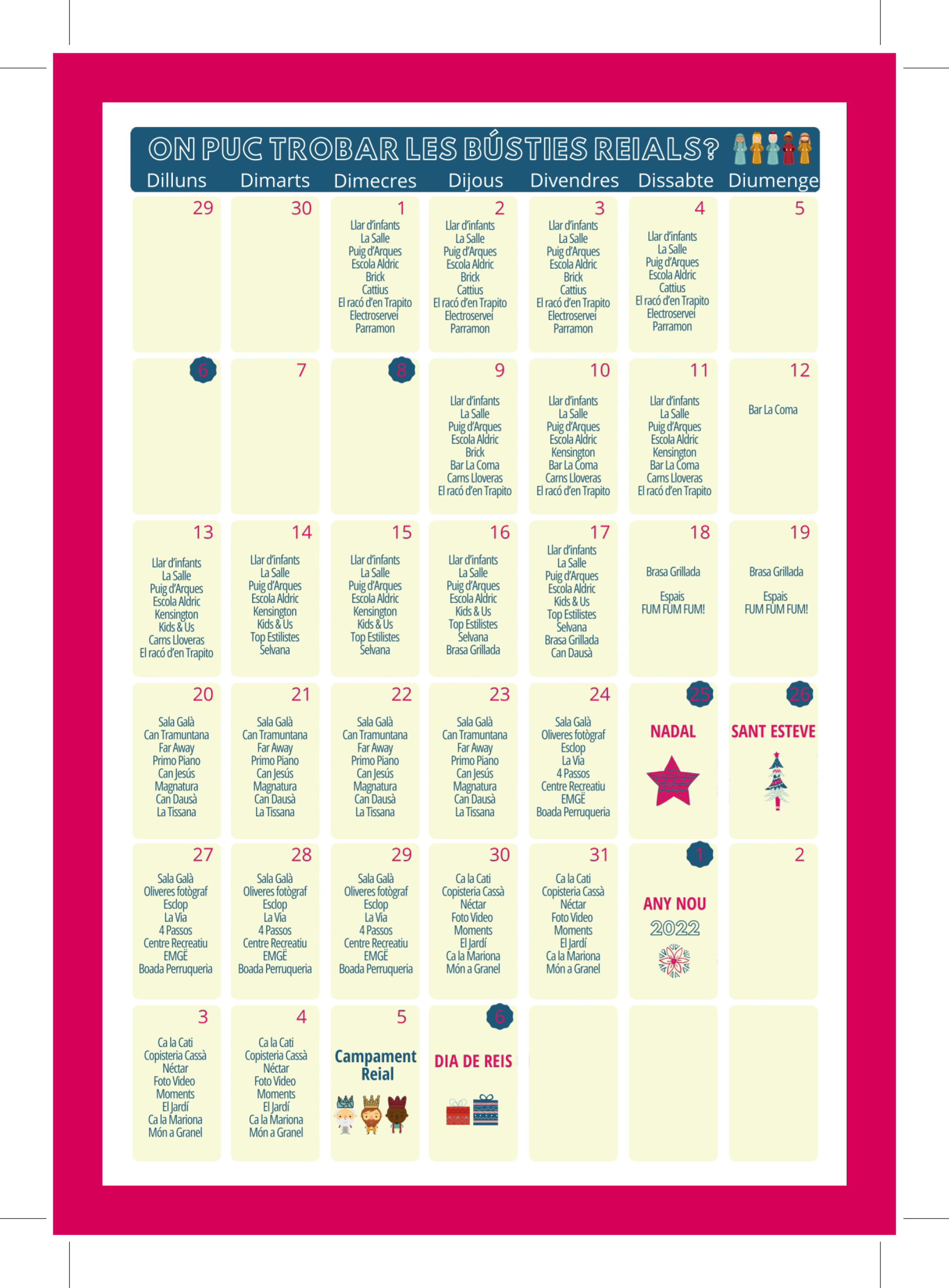 De l’1 de desembre al 5 de gener recorregut bústies reials: