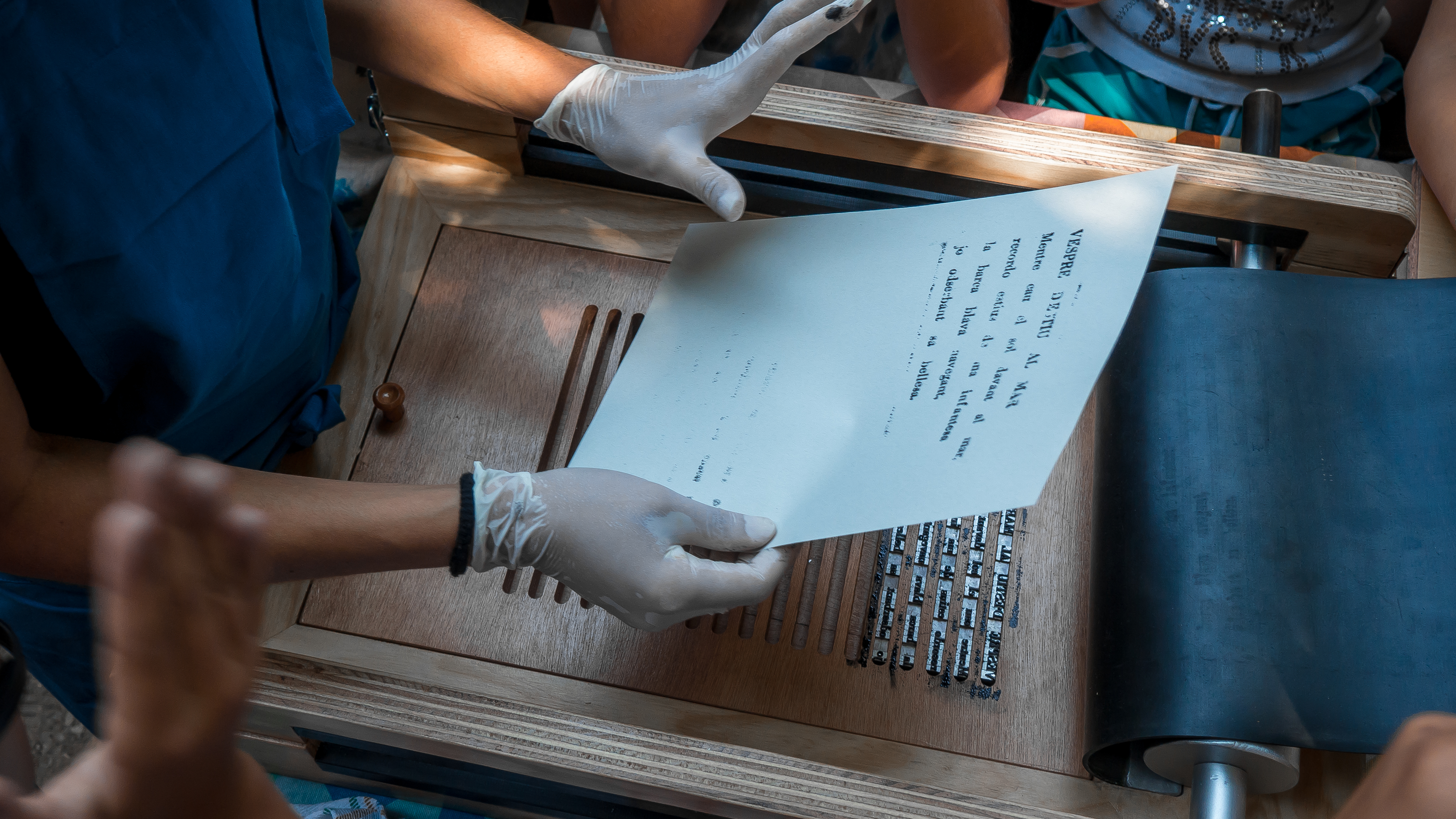 Taller de creació poètica. L’activitat es divideix en dues parts. La primera, amb la descoberta de poemes de Miquel Martí i Pol, es donen les eines i el guiatge necessari perquè l’alumnat creï els seus propis textos. La segona part de l’activitat consisteix en la preparació per a la impressió artesana dels poemes amb la impremta mòbil expressa del taller. El resultat és l’obtenció d’un poema imprès que els participants es poden emportar a casa.
