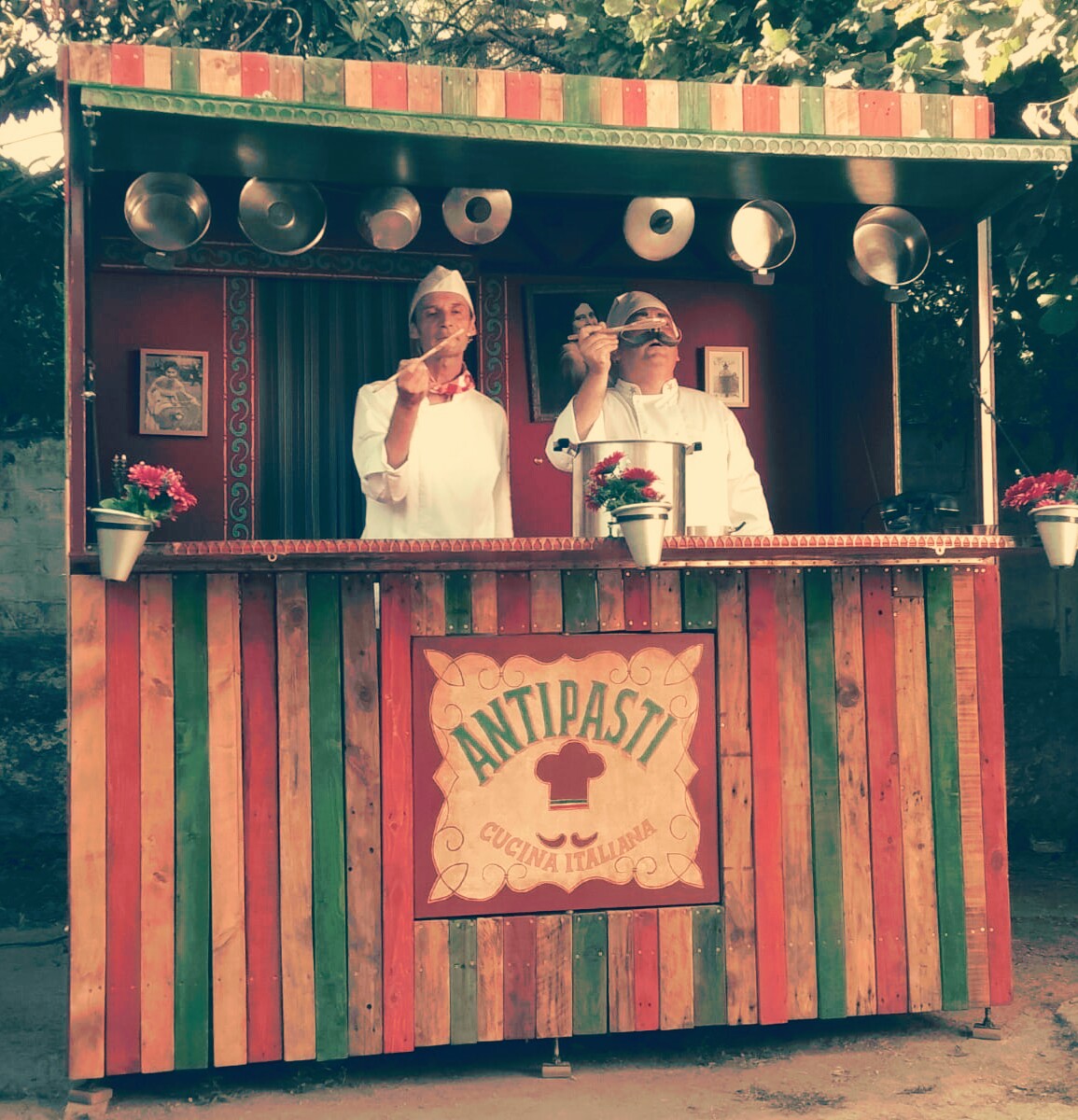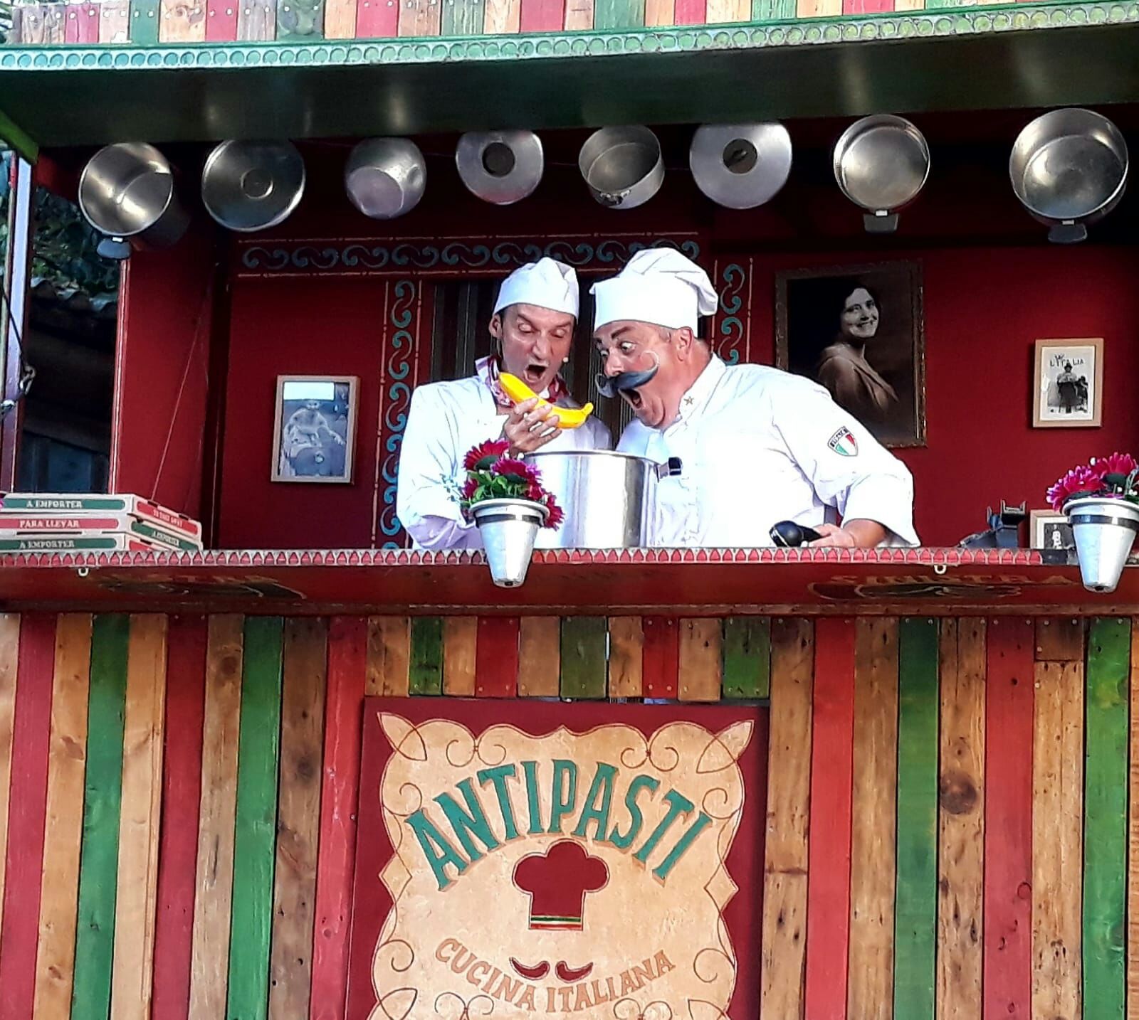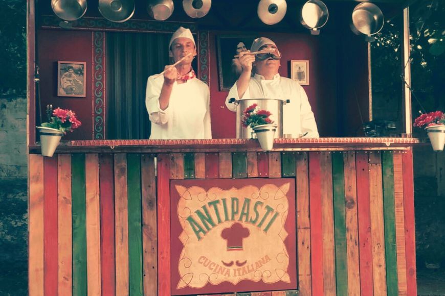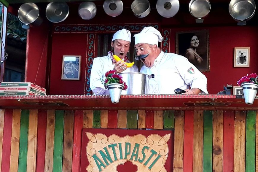 L'Antipasti és un curiós restaurant de carrer de menjar italià, tegentat per dos cuiners molt escpecials: el xef Marcelo Mascarpone i el seu ajudant Pepino Pepperoni. Espectacle de màgia i circ, tot al ritme de la millor música italiana. Sigueu valents i reserveu taula!
