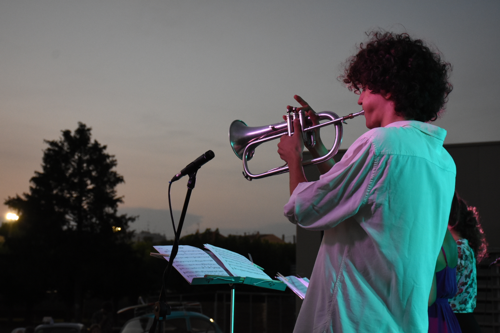 ↱21.30 h Alba Pujals Sextet Alba Pujals trombó Irene Reig saxo alt Lluc Casares saxo tenor Oriol Vallès trompeta Xavi Torres piano Giuseppe Campisi contrabaix Joan Casares bateria. A continuació: jam session oberta amb Lacus Music.