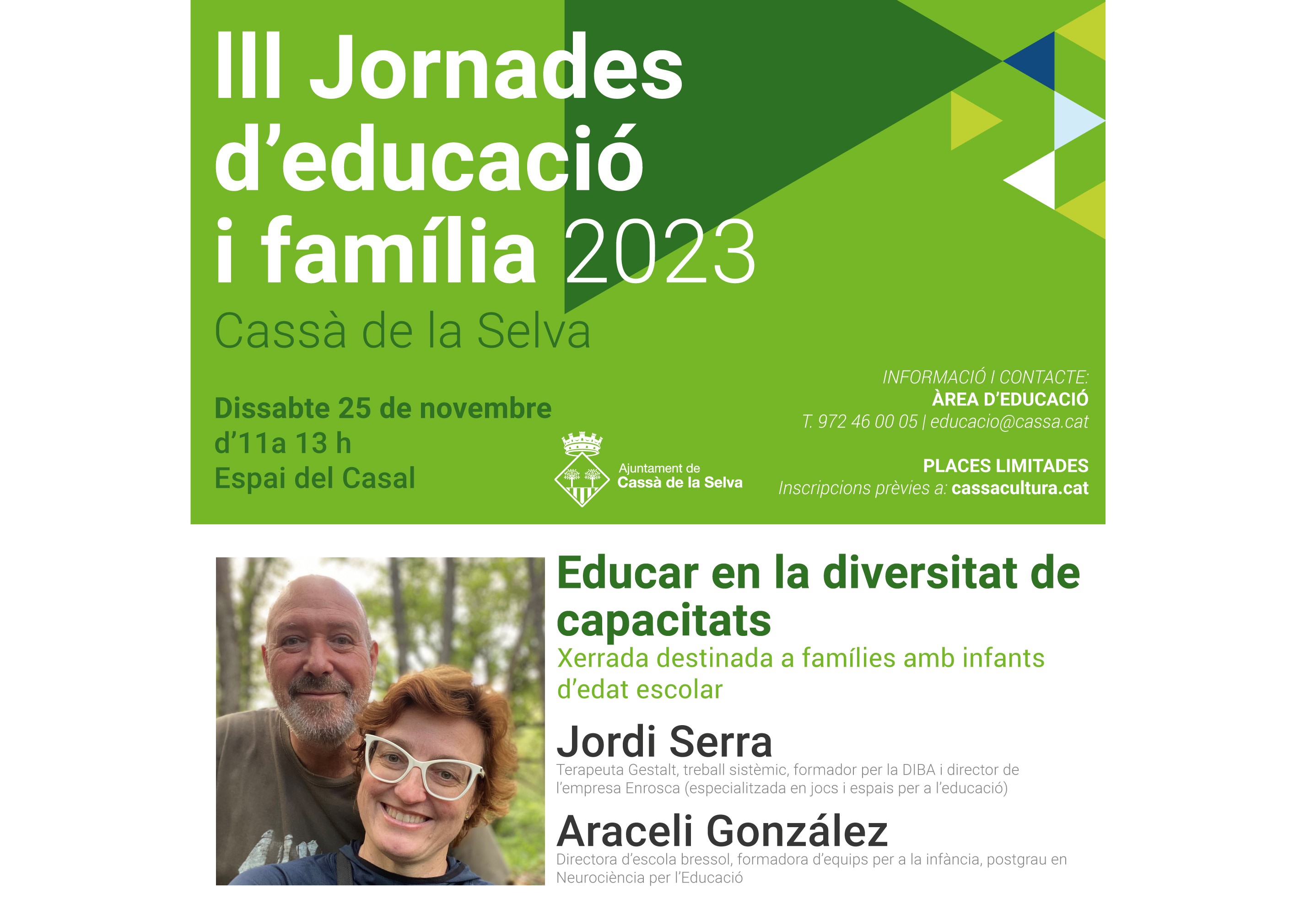 Per a més informació podeu contactar amb l’àrea d’Educació de l’Ajuntament: educacio@cassa.cat / 972 46 00 05