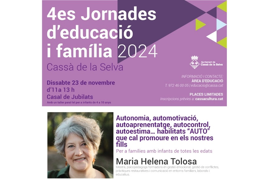 Educar és com fer créixer una flor a la seva manera. La família no pot preveure totes les habilitats que un fill o filla pot necessitar al llarg de la seva vida. És per això que ens cal PROMOURE ELS PROGRAMES “AUTO” en els nostres fills i filles: autoconeixement, autoaprenentatge, autoconfiança, automotivació, autocrítica... AUTONOMIA perquè puguin créixer i seguir el seu camí també en l’adversitat i en l’imprevisible. En aquesta xerrada parlarem de les habilitats imprescindibles que cal promoure en els infants i adolescents per assolir l’adultesa i com promoure-les.