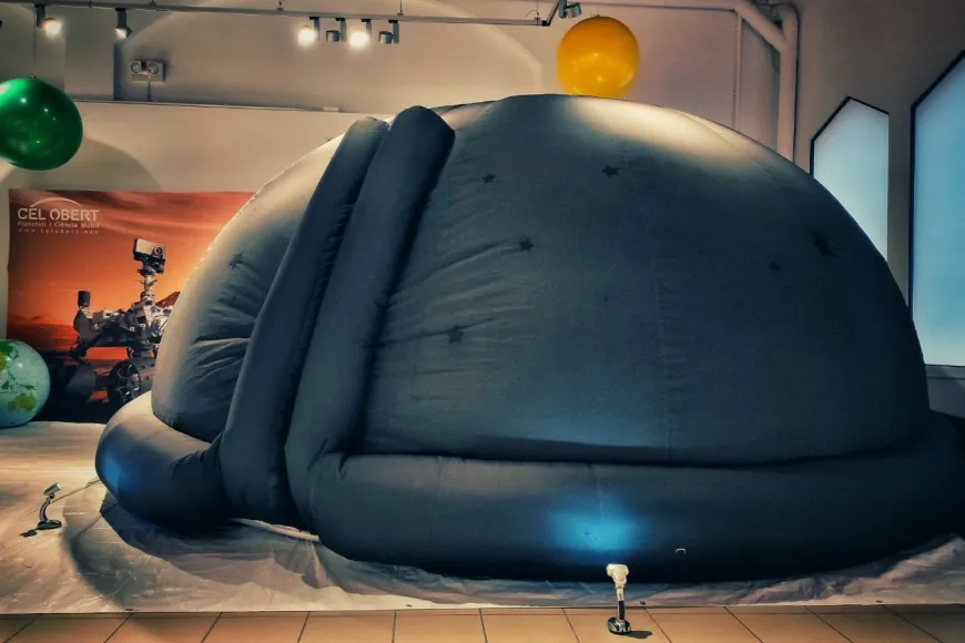 Dins d’una cúpula inflable on es projecten imatges i sons en 360º ens endinsarem al món de l’astronomia i la ciència mitjançant les sensacions. Una experiència d’aprenentatge única per treballar l’astronomia i la ciència mitjançant projeccions amb resolució 4K dins una cúpula inflable.