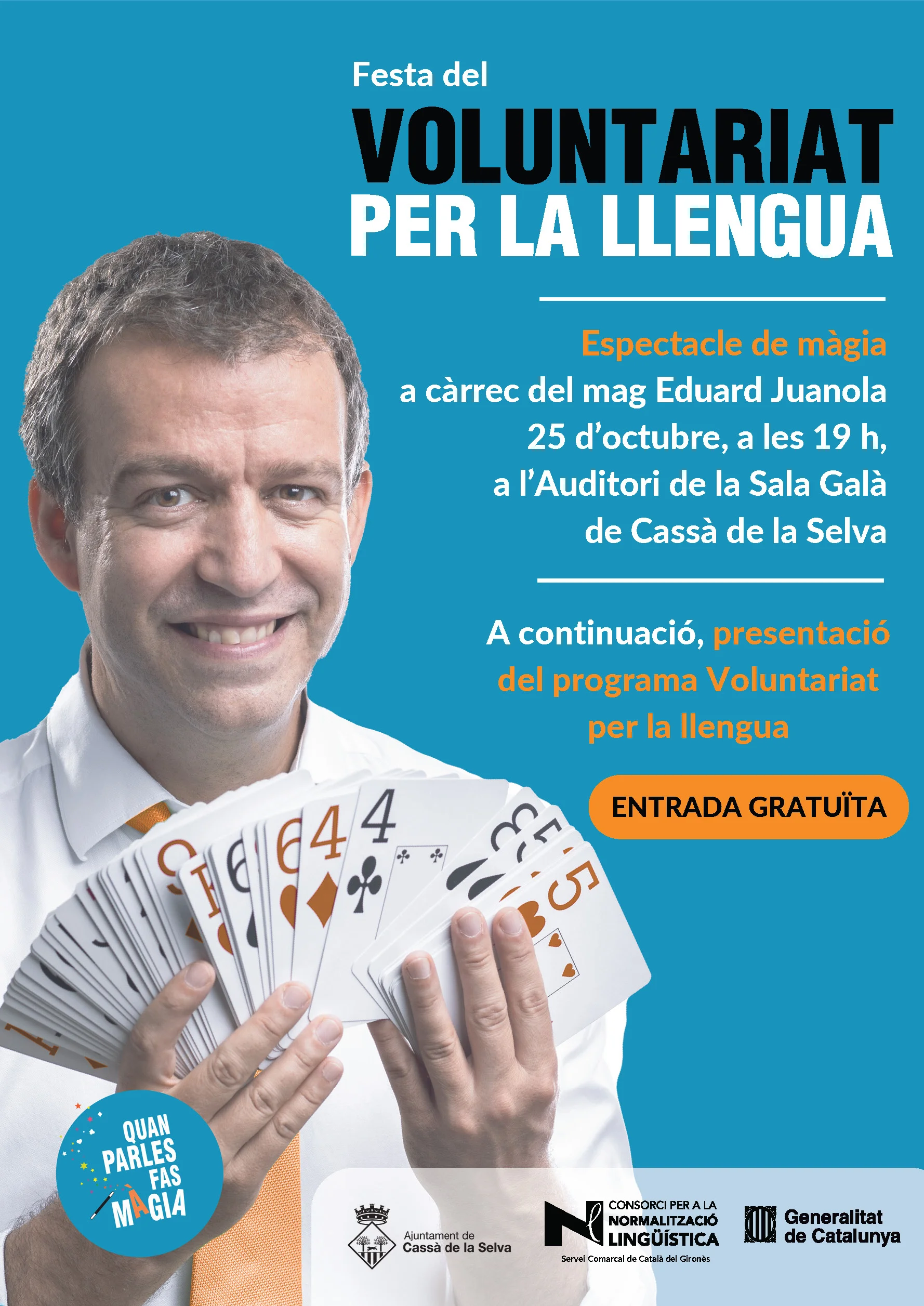 Tindrem un espectacle de màgia a càrrec del mag Eduard Juanola i la presentació del programa Voluntariat per la llengua.