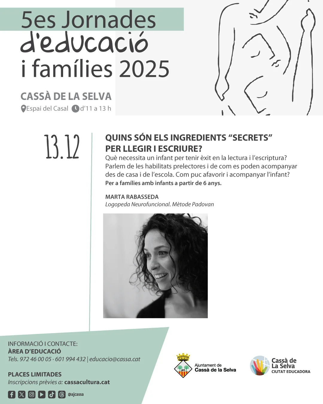 Per a més informació podeu contactar amb l’àrea d’Educació de l’Ajuntament: educacio@cassa.cat / 972 46 00 05